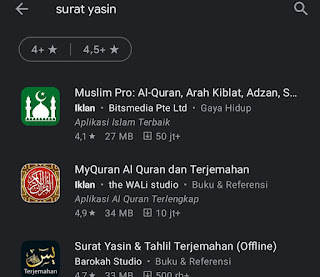 *Selanjutnya akan muncul deretan aplikasi surat yasin yang bisa kamu download dan instal pada perangkat smartphone.
